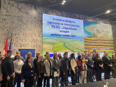 Potpredsjednik Vlade i ministar poljoprivrede, šumarstva i ribarstva David Vlajčić i ravnatelj Agencije za plaćanja u poljoprivredi, ribarstvu i ruralnom razvoju Nikola Dolački u utorak, 4. studenoga 2025. godine, u Nacionalnoj i sveučilišnoj knjižnici u Zagrebu uručili su 63 ugovora mladim poljoprivrednicima, ukupne vrijednosti 4,8 milijuna eura, a sveukupno je na adrese korisnika odaslano 83 ugovora u vrijednosti 6,2 milijuna eura.